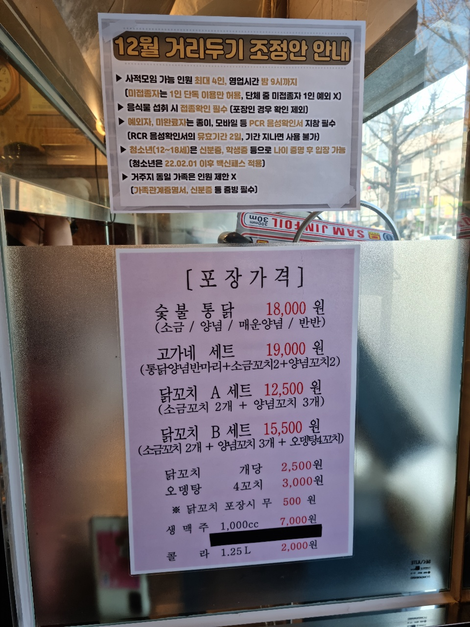 숯불 통닭 18,000원 고가네 세트 19,000원