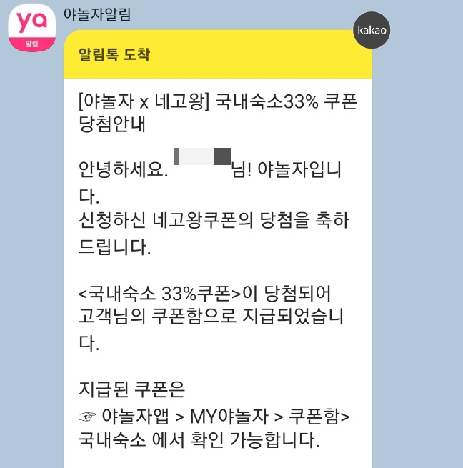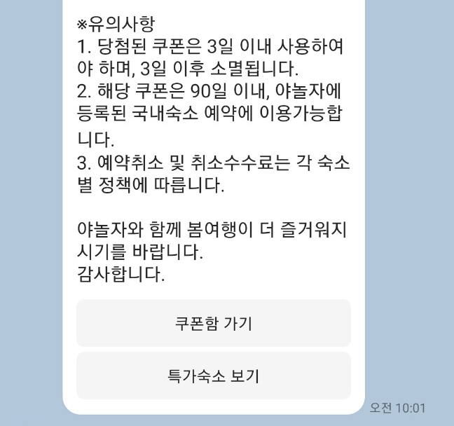 아침에 일어나서 야놀자 홈페이지에서 직접 확인 할 생각을 하고 있었습니다. 그런데 야놀자알림이 와 있는 것을 확인 할 수 있었습니다.